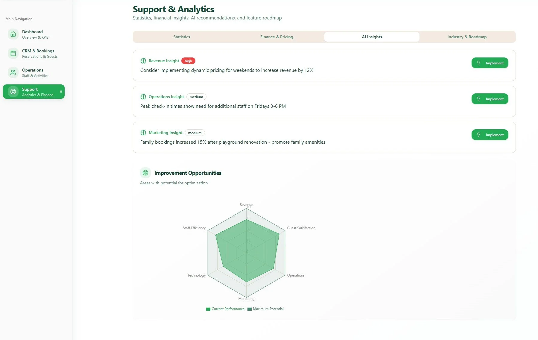 Med AI insights og statistik får du indsigt i økonomi, statistik og drift. Campbase hjælper dig med at tage de rigtige beslutninger, baseret på data.